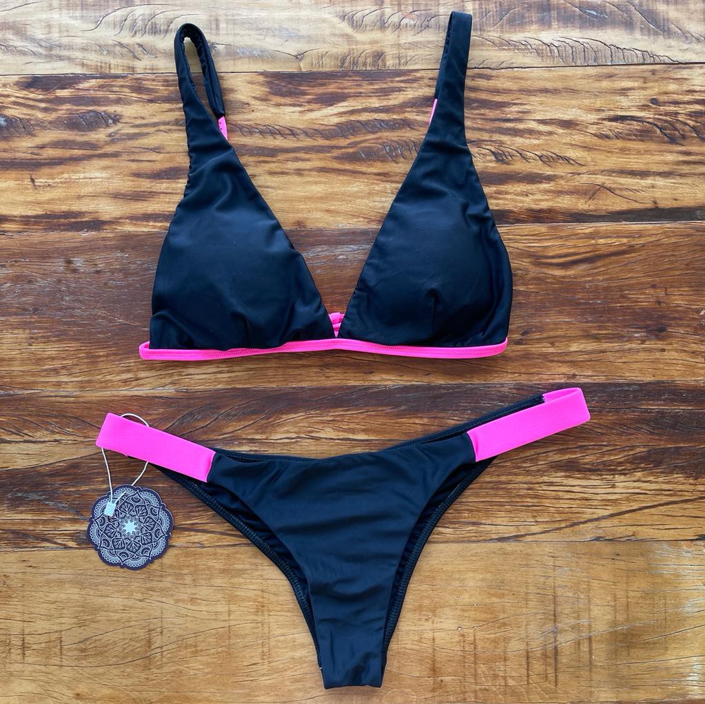 Top Elis com bojo removível e alças reguláveis. Calcinha tradicional.