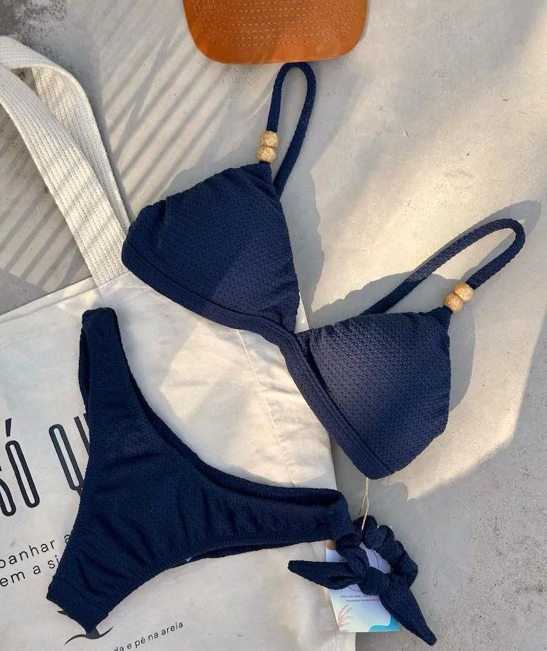 Top Surf com bojo removível e alças reguláveis e calcinha asa delta (que pode ser usado na altura normal da cintura)